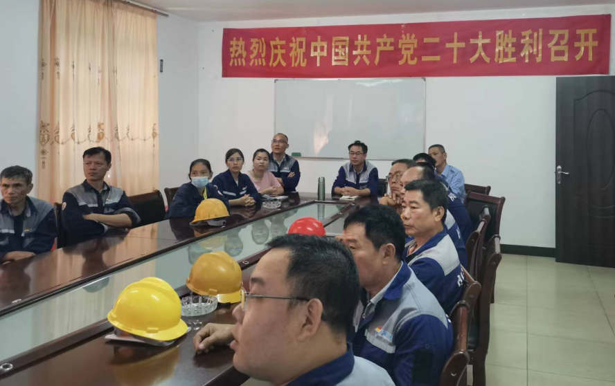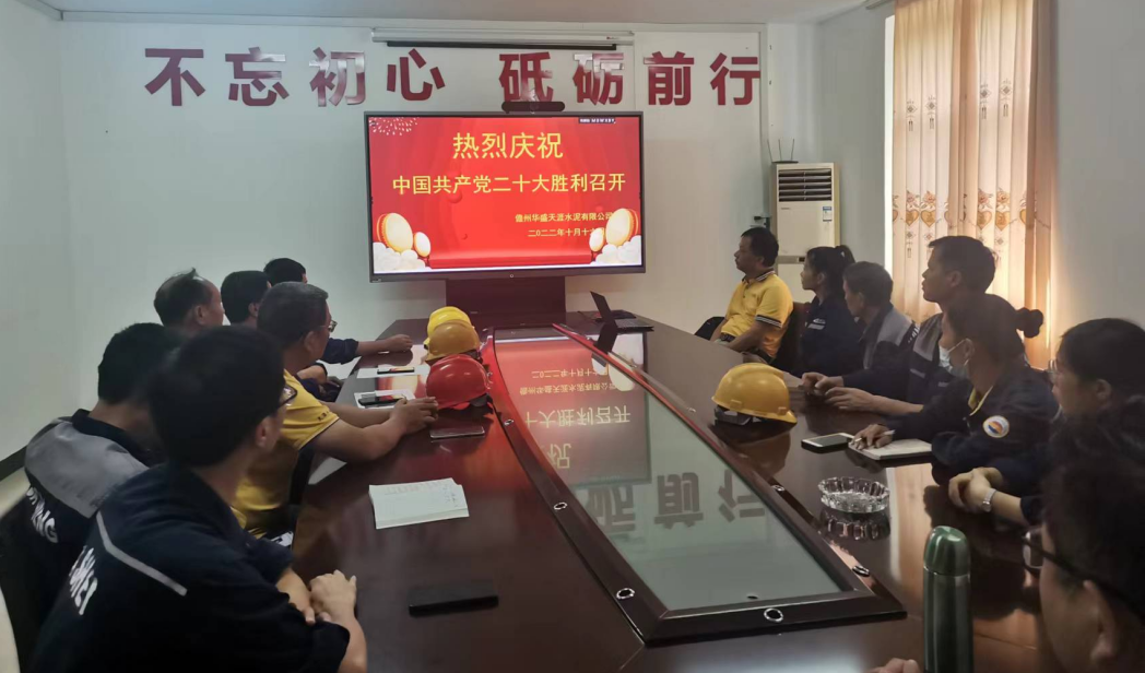 2022年10月16日,上午10点,举世瞩目的中国共产党第二十次全国代表大会,在北京人民大会堂隆重开幕,儋州华盛水泥公司,在公司负责人李巍的安排下,由办公室组织全体管理人员、党员,在公司中控楼会议室,观看二十大会议直播。